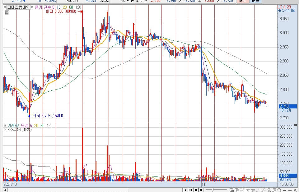 금일 시초가 2,725원으로 장 시작을 한 코데즈컴바인 주가는 장 중 고점 2,800원, 저점 2,720원을 형성하고 장마감 시 2,740원으로 전일 대비 0.54% 하락하였습니다.